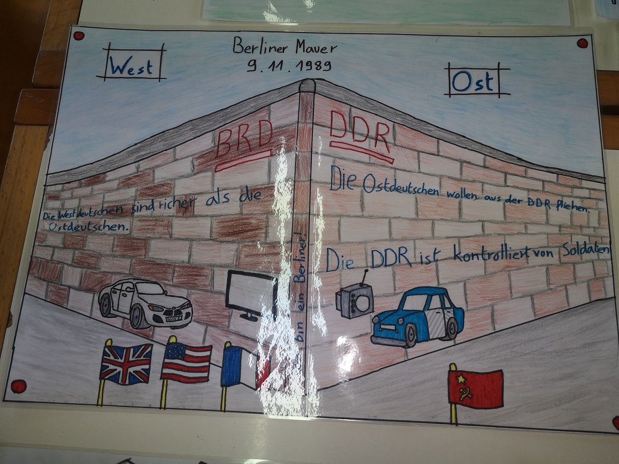 Ein Highlight war zweifelsohne der Besuch der örtlichen Mittelschule mit 700 Schülern im Alter zwischen 10 und 14 Jahren sowie der dazugehörigen Inklusionsklasse. Ich brachte den Schülern dieser Klasse ein Foto und einen kleinen Brief unserer deutschen Hauptschulklasse mit, in dem sie um eine Brieffreundschaft bitten. Gespannt blätterten die französischen Schüler im mitgebrachten Fotobuch unseres Olympiaprojekts. Ebenso gespannt warten unsere Schüler nun auf Post von der über 9000 Kilometer entfernten Insel. Beim Rundgang durch die Schule entdeckten wir auch ein kleines Schulprojekt, in dem sich Kinder gemeinsam mit ihrer Deutschlehrerin Gedanken zum ehemals geteilten Deutschland gemacht hatten. Tolle Bilder zeigten interessante Sichtweisen. Auch der Austausch, gerade mit uns Lehrern aus den neuen und alten Bundesländern, war sehr interessant. Beim abschließenden gemeinsamen Mittagessen in der Mensa wurden wir natürlich von den neugierigen Schülern ausgefragt, woher wir kommen. Auf diesem Wege haben sie uns direkt mit einigen Englisch- und Deutschkenntnissen beeindruckt.